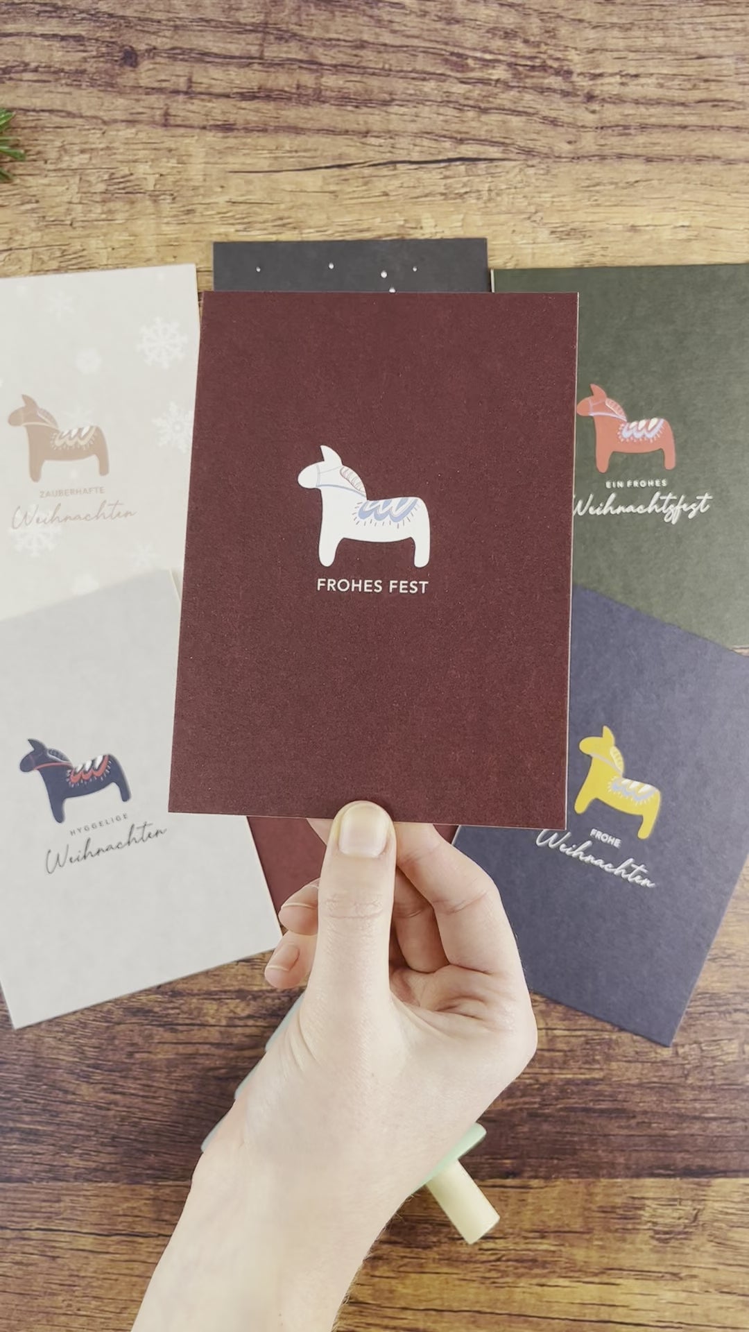 Entdecke unsere Weihnachtskarten inklusive Recycling-Papier-Umschlag mit liebevoll illustrierten Motiven für Weihnachten im DIN-A6-Format (14,8 cm x 10,5cm).
